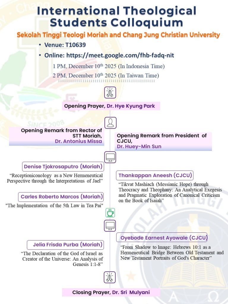 Lembaga Penelitian dan Pengabdian kepada Masyarakat Sekolah Tinggi Teologi Moriah, Indonesia, bekerjasama dengan Fakultas Teologi, Chang Jung Christian University, Taiwan, …